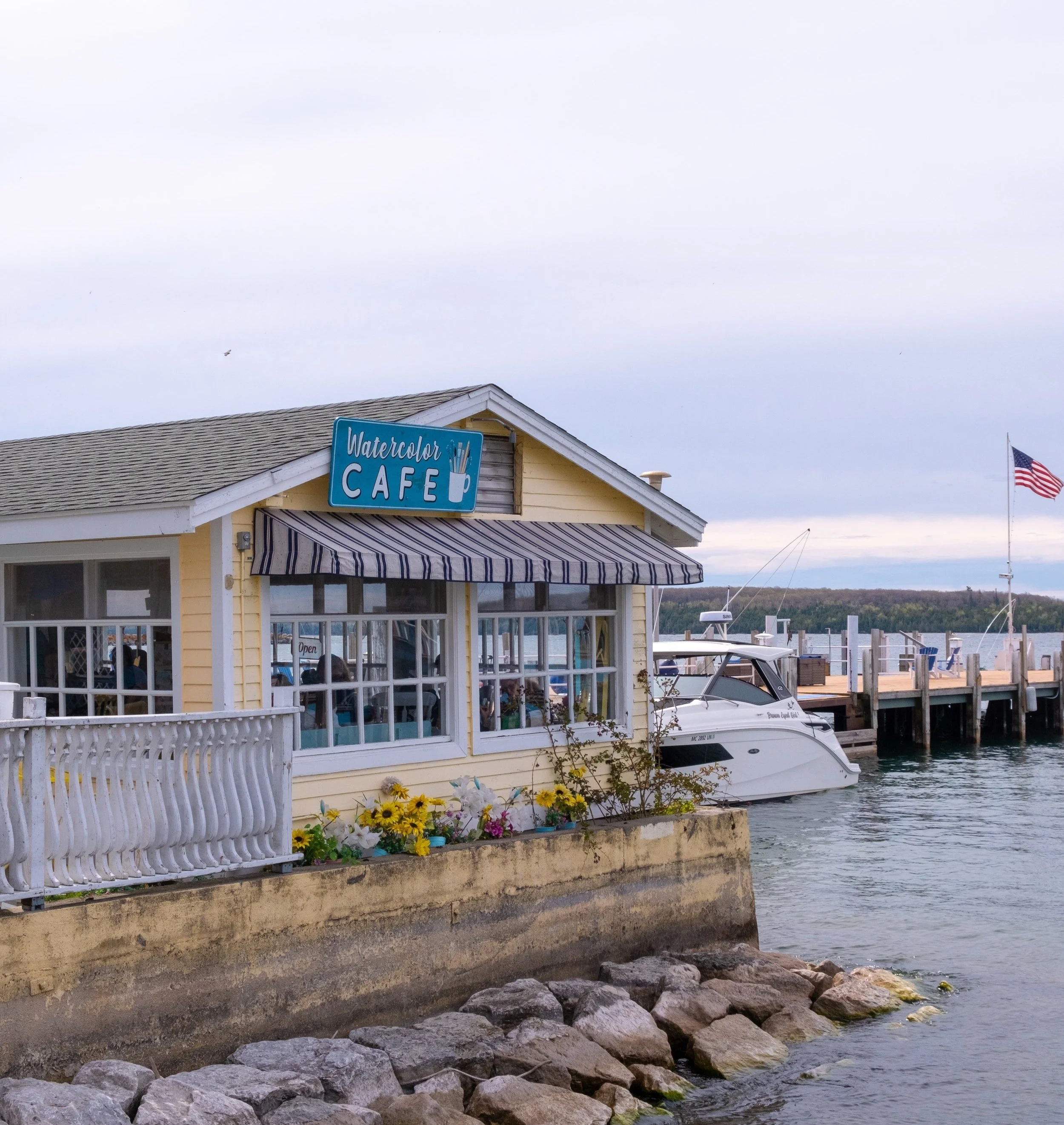 Mackinac Island is known for it’s fudge (which I am not a fan of in general) but after our bike ride we stopped into the fudge shop at the Murray Hotel where my brother got a block of fudge before we headed back to the dock for the final 8pm ferry back to Mackinac City. One of the only things on my list we did not do that was visit the Watercolor Cafe which is a very popular cafe and coffee shop right on the water! It was very busy and we ran out of time to go inside but I did get this picture of it ;)